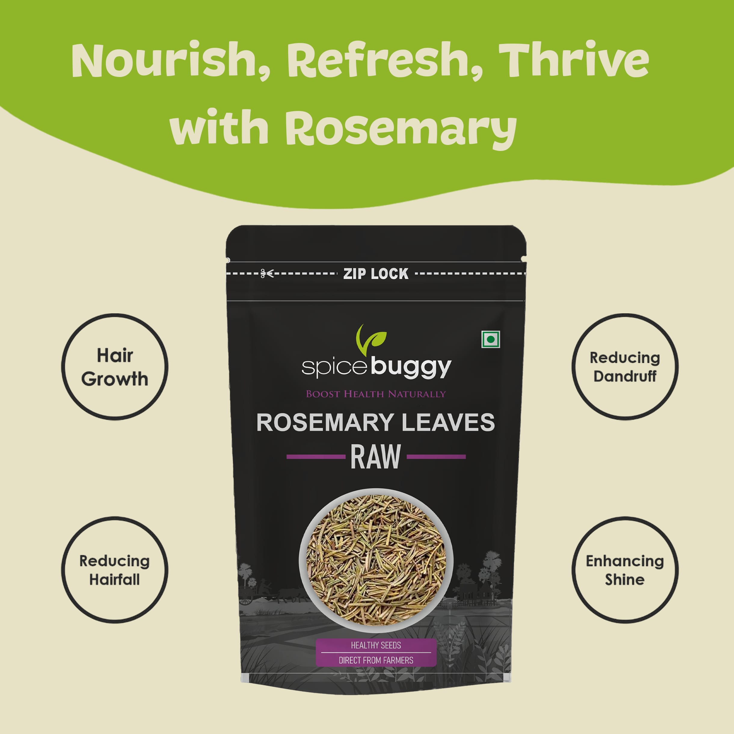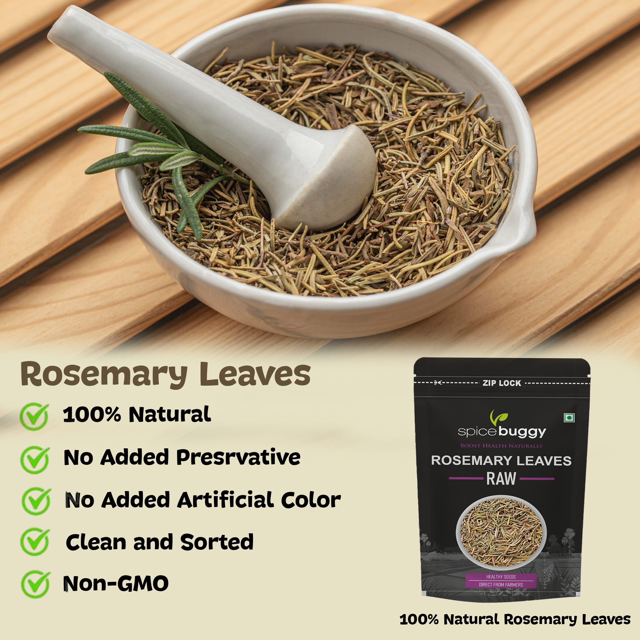SpiceBuggy Rosemary Dry Leaves | Natural Herb for Hair Care, Cooking & Tea